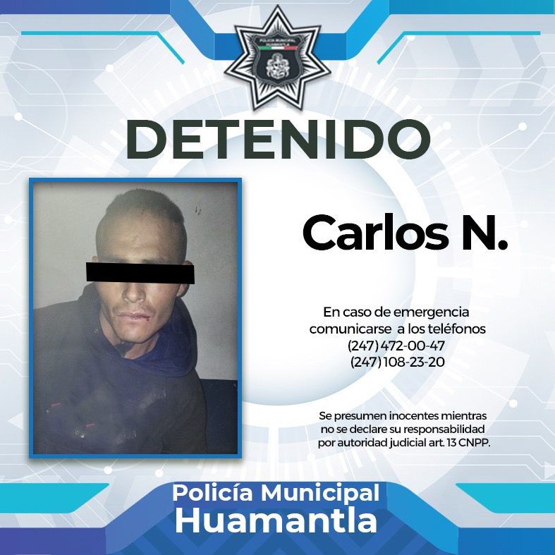 Como resultado del operativo “Centinela” que ejecuta la policía municipal de Huamantla, se logró la detención de un individuo que había ingresado ilegalmente a una propiedad privada.