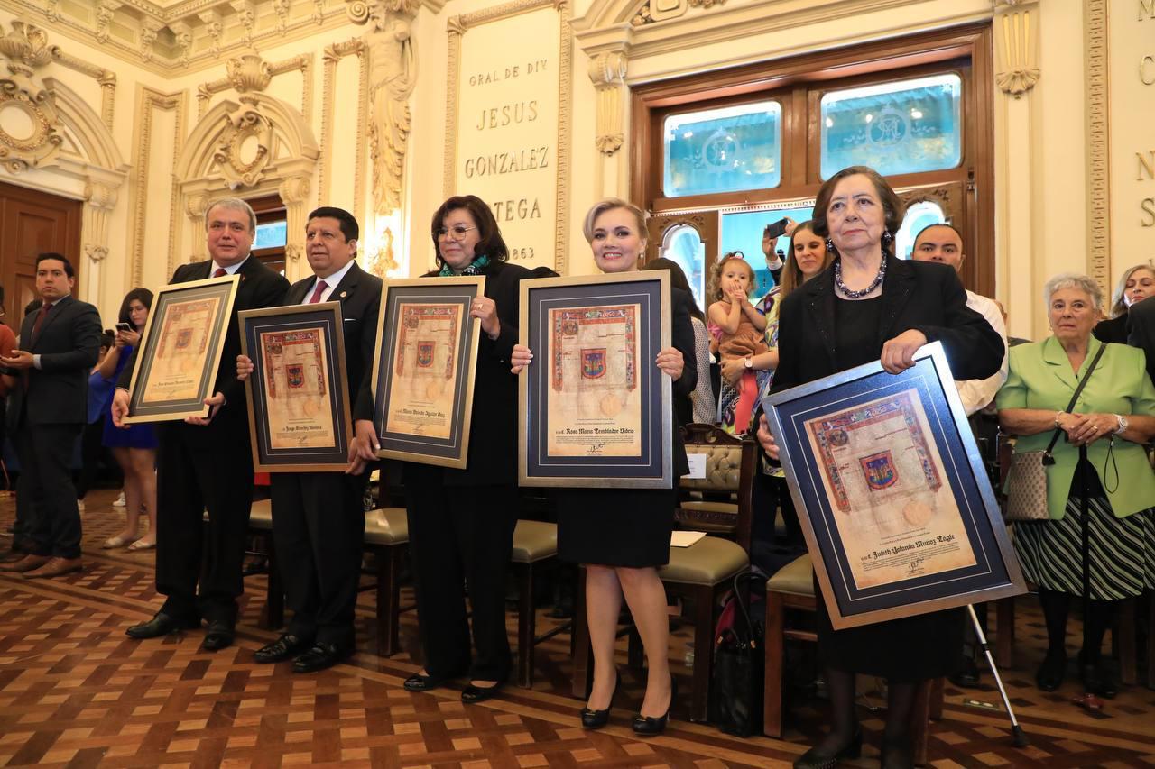 Juristas de gran vocación y trayectoria, María Belinda Aguilar Díaz, Judith Yolanda Muñoz Tagle, Jorge Sánchez Morales, José Ernesto Ramírez López y Rosa María Temblador Vidrio, recibieron de manos de Adán Domínguez dos de los documentos más emblemáticos que otorga el Ayuntamiento, los cuales reconocen en grado eminente sus aportaciones por la búsqueda de la justicia, la defensa de los Derechos Humanos y la cultura de la legalidad.