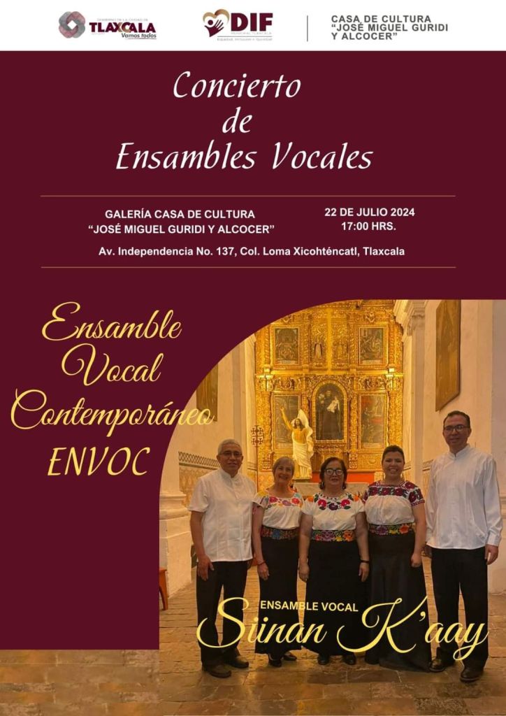 En Tlaxcala Visita Capital Tlaxcala la cultura es una actividad importante y por ello, el Ayuntamiento de Tlaxcala te invita a que disfrutes de este concierto de ensamble de voces el 22 de julio en la Casa de Cultura José Miguel Guridi y Alcocer.