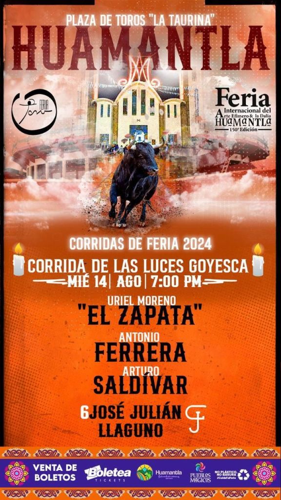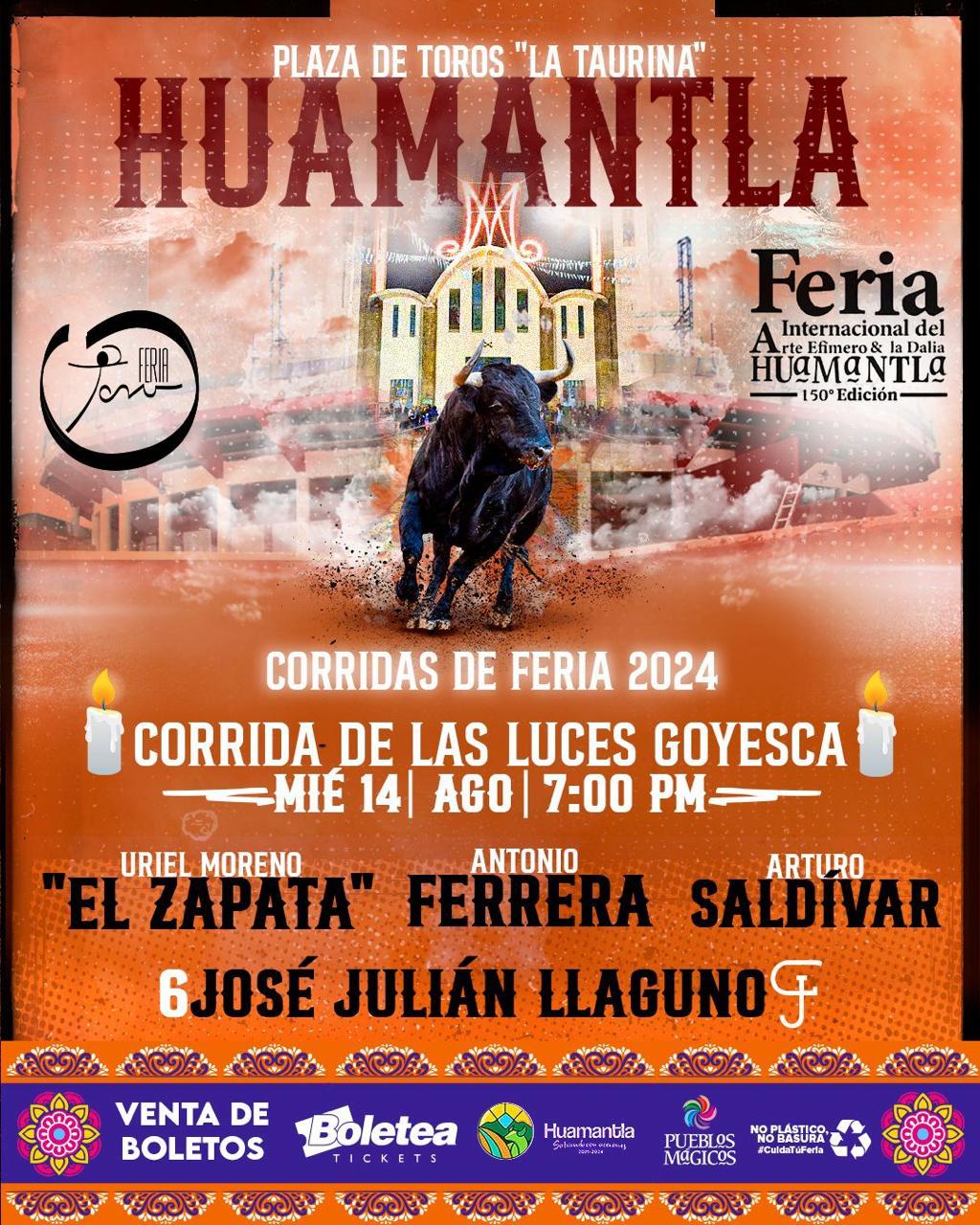 Misma que estara conformada con la participación de los matadores: Uriel Moreno «El Zapata», Antonio Ferrera, Arturo Saldívar quienes lidiarán toros de la ganadería Jose Julian Llaguno.