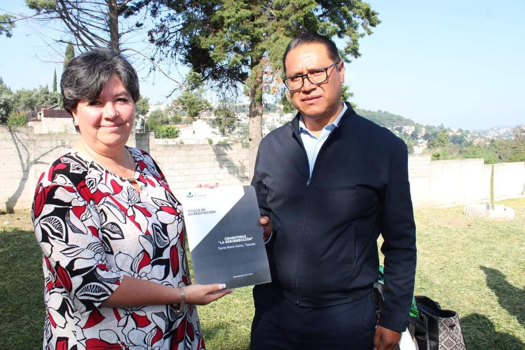 La presidenta municipal de Tlaxcala, Maribel Pérez Arenas, hizo entrega junto a las autoridades de comunidad de Santa María Ixtulco, de la obra de mejoramiento del panteón «La Resurrección», acción que beneficiará a la comunidad dado que conjunto con ello se entregaron títulos de propiedad de fosas en este lugar.