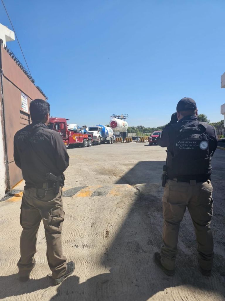 La PFM de la Agencia de Investigación Criminal (AIC) y peritos especializados en diferentes materias, cumplimentaron el cateo en el que se aseguró un inmueble, un tanque con capacidad de 93 mil litros, tres tanques de cinco mil litros, un vehículo tipo pipa con capacidad aproximada de 24 mil litros, un vehículo tipo pipa, un tractocamión tipo pipa con capacidad de 49 mil 500 litros y un vehículo tipo volteo.