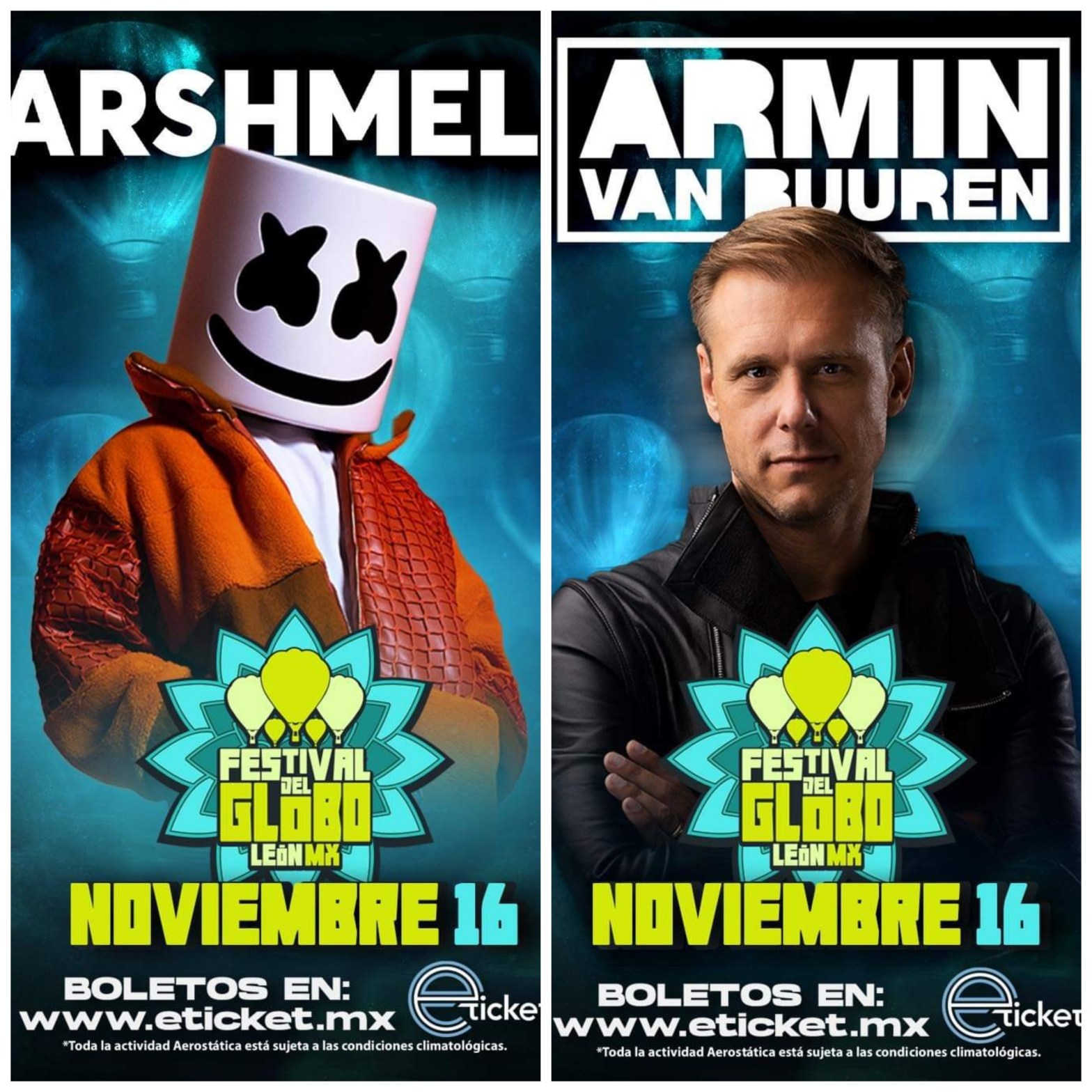 Armin van Buuren y Marshmello harán la noche del 16 de noviembre de 2024 una de las más vibrantes en la historia del Festival de Festivales, un espectáculo sin precedentes al que asistirán amantes de la música electrónica de TODO EL MUNDO. Los boletos ya están a la venta a través de http://www.eticket.mx y diversos puntos de venta en todo México. Durante la FASE 1 puedes adquirirlos más económicos que en ediciones anteriores. Además podrás disfrutar de amaneceres espectaculares con más de 200 globos aerostáticos y muchas sorpresas más.