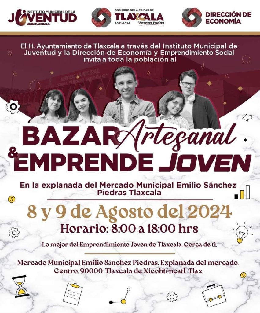 🖼️ El Ayuntamiento de Tlaxcala invita al público a visitar y adquirir los diferentes productos en el «Bazar Artesanal y Emprende joven», que organizan conjuntamente la Dirección de Economía y la Coordinación de Juventud, con el objetivo de apoyar la económica de las familias tlaxcaltecas.