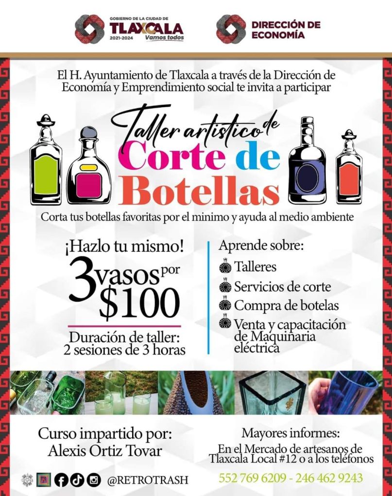 🍾El Ayuntamiento de Tlaxcala invita al público en general a participar en el taller artístico de corte de botellas.