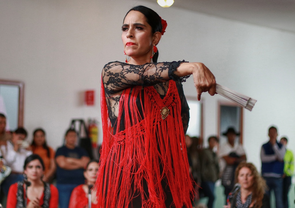El día 14 en el patio principal se presentó en primer lugar la pieza «Albero Rojo» del grupo «Flamenco con Solera» que dirige la maestra Rocío Ortas, la gente abarrotó el recinto y aplaudió con fuerza el recital de estos artistas del cante y baile.