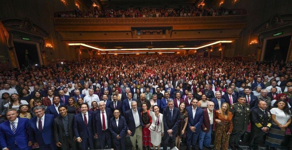 En ese recinto, Claudia Sheinbaum refrendó su compromiso de gobernar bajo el mandato del pueblo de México, que fue continuar con la Cuarta Transformación de la vida pública, con la cual el presidente Andrés Manuel López Obrador logró un cambio en la vida de todas y todos los mexicanos, al dejar atrás los gobiernos neoliberales.