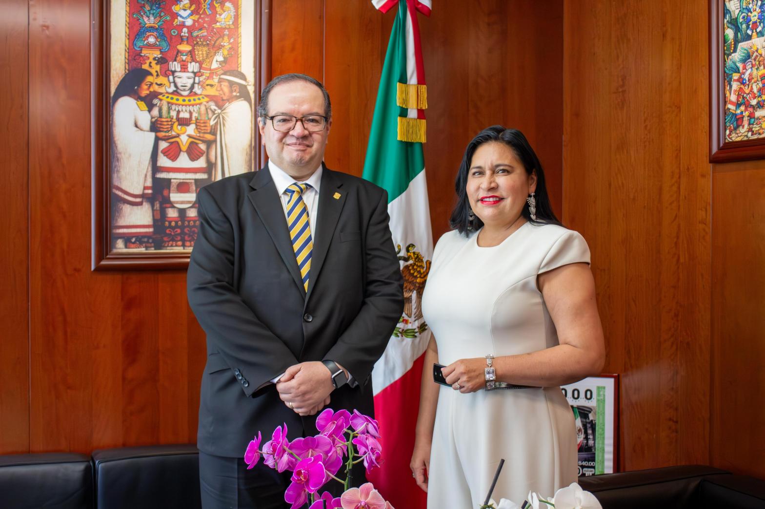 La senadora del PES, Elvia Marcela Mora Arellano, manifestó su orgullo por ser egresada de esta Universidad, porque gracias a su formación, dijo, ahora puedo hacer frente a la responsabilidad de ser presidenta de la Comisión de Relaciones Exteriores, “y soy amiga de un gran personaje político” como lo es Beatriz Paredes.