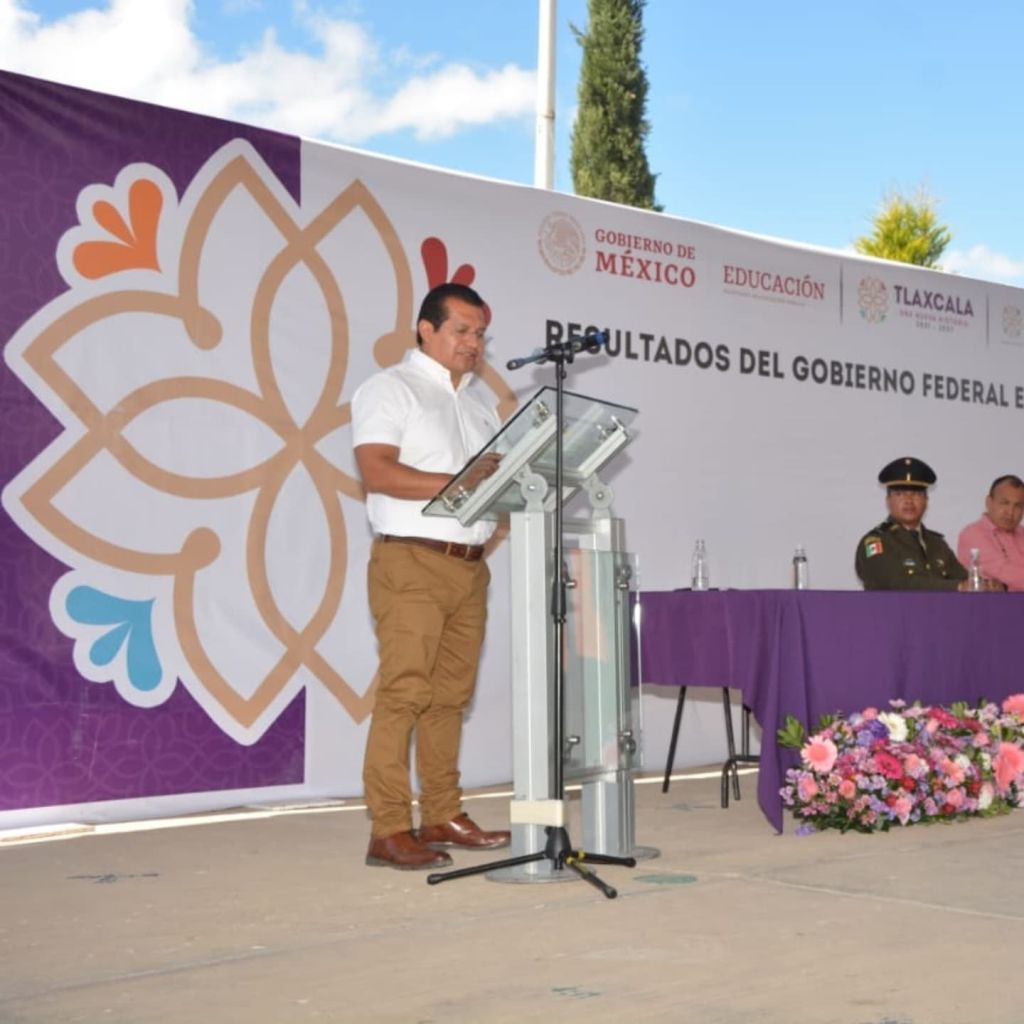 Carlos Luna realiza «Informe de Resultados del Gobierno Federal en el Sector Educativo Tlaxcalteca», en la primaria «Carlos González» del municipio de #Tlaxco.