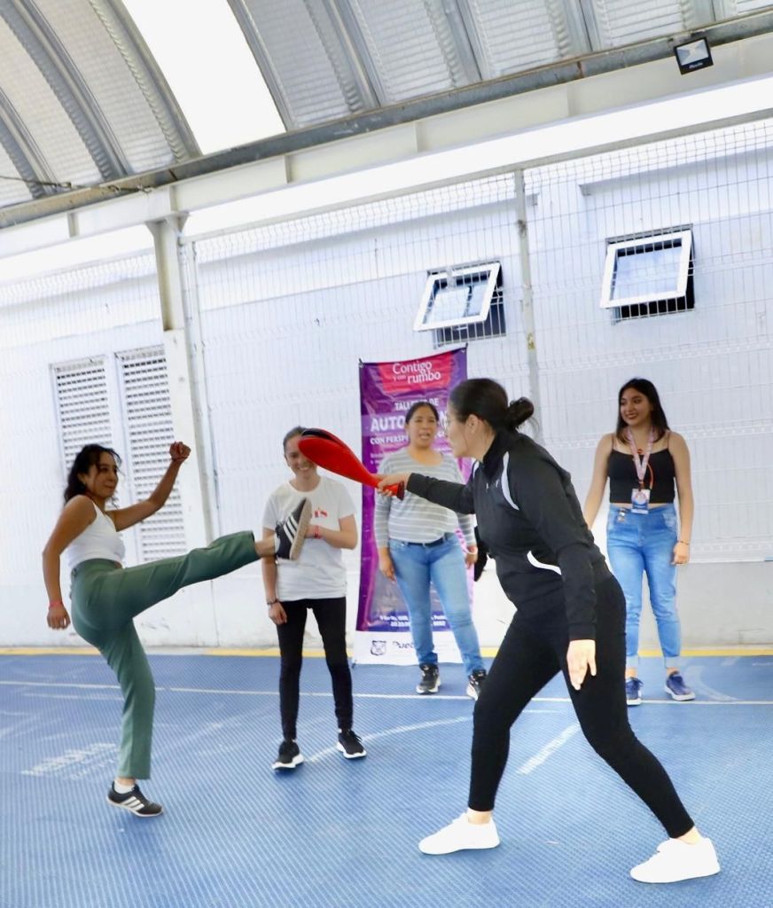 En esta ocasión y gracias a la colaboración entre las dependencias del Ayuntamiento, la Secretaría para la Igualdad Sustantiva de Género, impartió el taller de autodefensa a colaboradoras de este Organismo Público Desentralizado, donde las mujeres lograron aprender técnicas, posturas corporales y movimientos que, sin importar edad, peso o talla, les permitan aplicar fuerza en zonas estratégicas para liberarse en caso de estar en peligro.