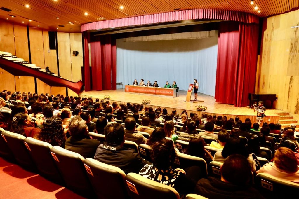 Durante el evento celebrado en el Teatro Universitario de la UATx, la directora de Educación Básica, Alma Rosa Sampedro Reyes y representante del secretario de Educación Pública, Homero Meneses Hernández, destacó que la actividad que se realizará los días 29 y 30 de agosto, contribuye a fortalecer los principios de la NEM, modelo donde las y los maestros son el eje de la transformación.
