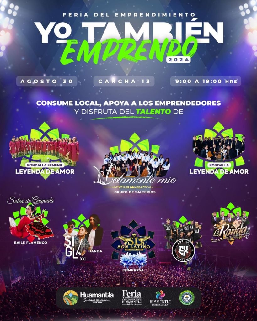 El H. Ayuntamiento de Huamantla, a través de la Coordinación de Desarrollo Económico, Juventud y Turismo, invita a toda la ciudadanía a visitar la Feria del Emprendimiento 2024, bajo el lema “Yo también emprendo”.