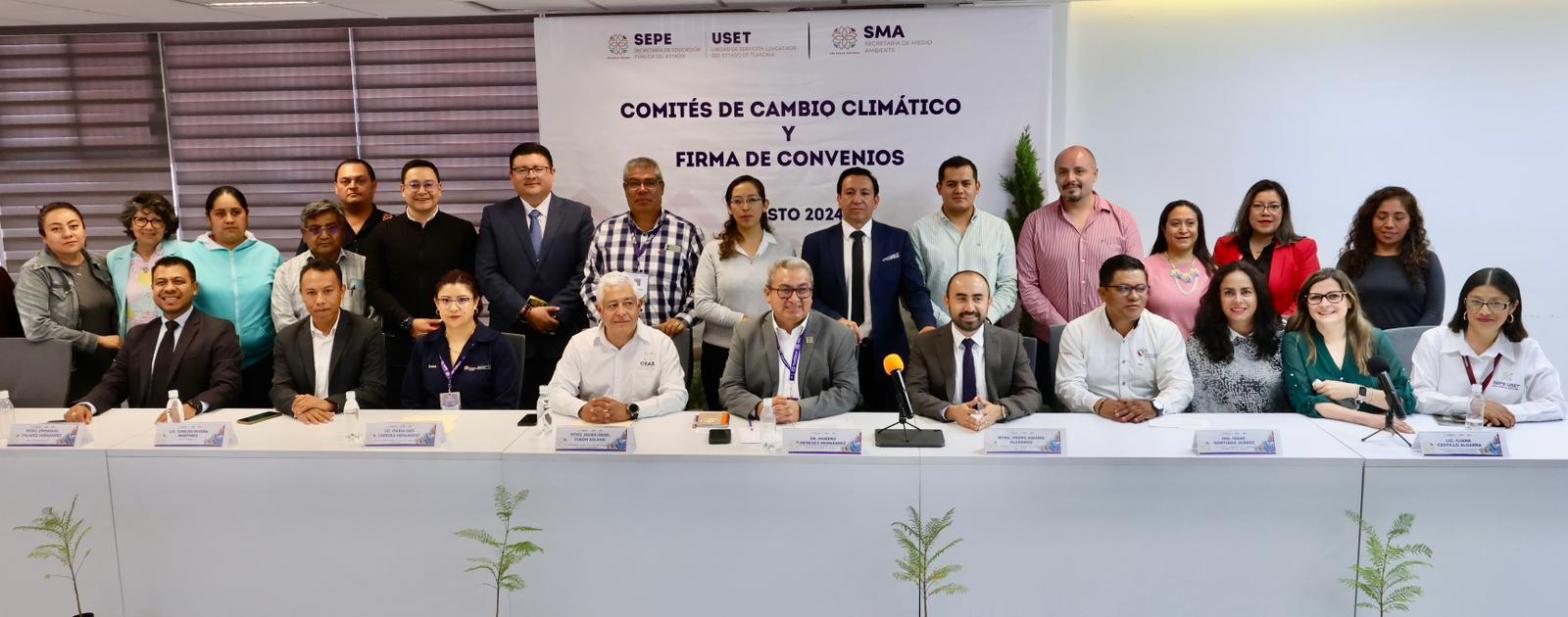 El secretario de Educación Pública del Estado (SEPE), Homero Meneses Hernández, encabezó la presentación de Comités de Cambio Climático en instituciones de educación básica, media superior y superior de Tlaxcala, públicas y privadas, así como la firma de convenio de colaboración con la Secretaría de Medio Ambiente (SMA) y las Asociaciones Civiles 3R y Serpiente de Hojas.