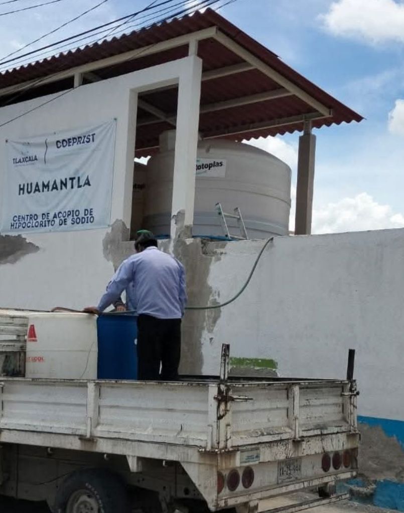 Huamantla es centro de distribución regional de hipoclorito de sodio en convenio con COEPRIST, con la intención de dotar del producto a los comités de agua 💧 y municipios de la zona oriente del estado, a través de la Comisión de Agua Potable y Alcantarillado del Municipio de Huamantla.