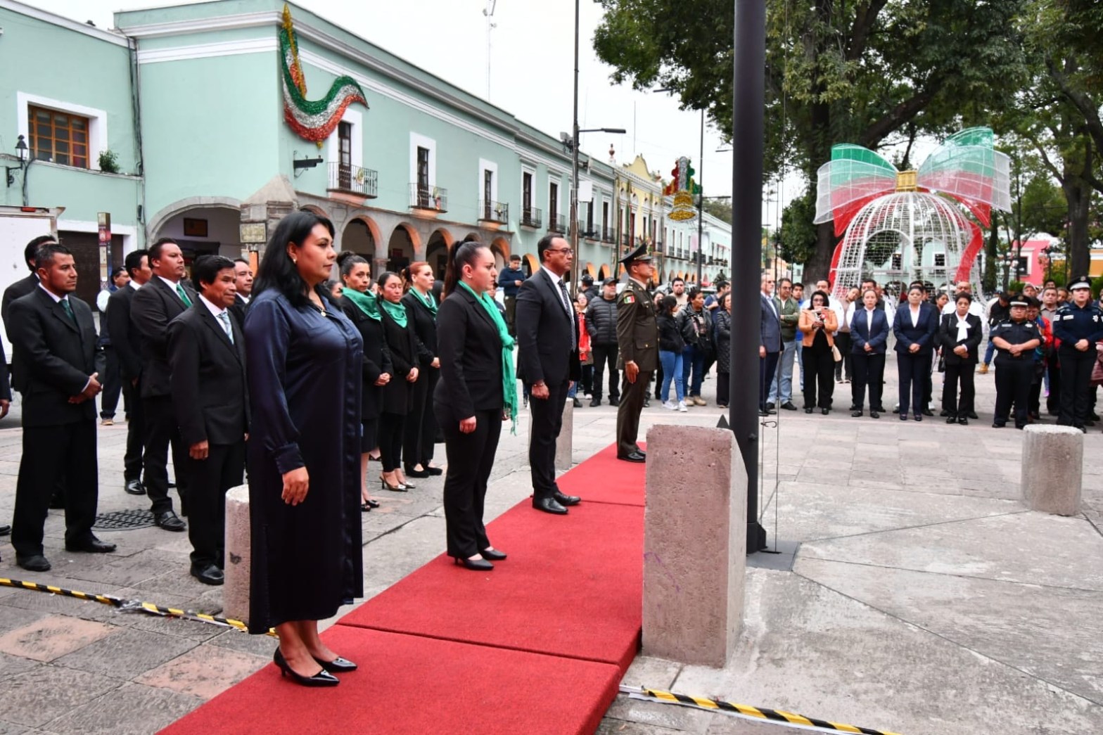 En el marco de las celebraciones del mes patrio, el H. Ayuntamiento de Huamantla participó en el acto solemne de arrío de la Bandera Nacional, llevado a cabo en el Zócalo de la ciudad de Tlaxcala.