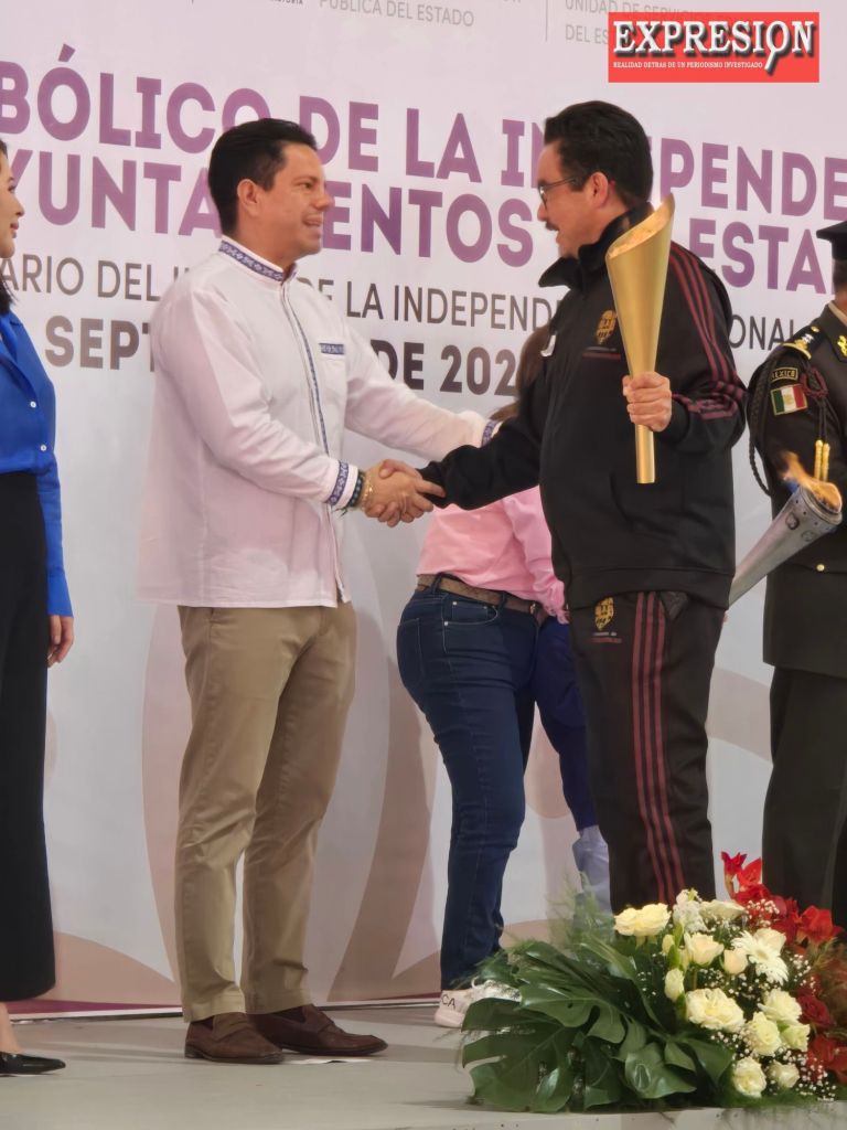 El dia de hoy el alcalde de Yauhquemehcan David Vega Terrazas acudio a la Ceremonia de entrega de Fuego Simbólico de Independencia, el cual recibió por manos de la Gobernadora de Tlaxcala Lorena Cuellar Cisneros.