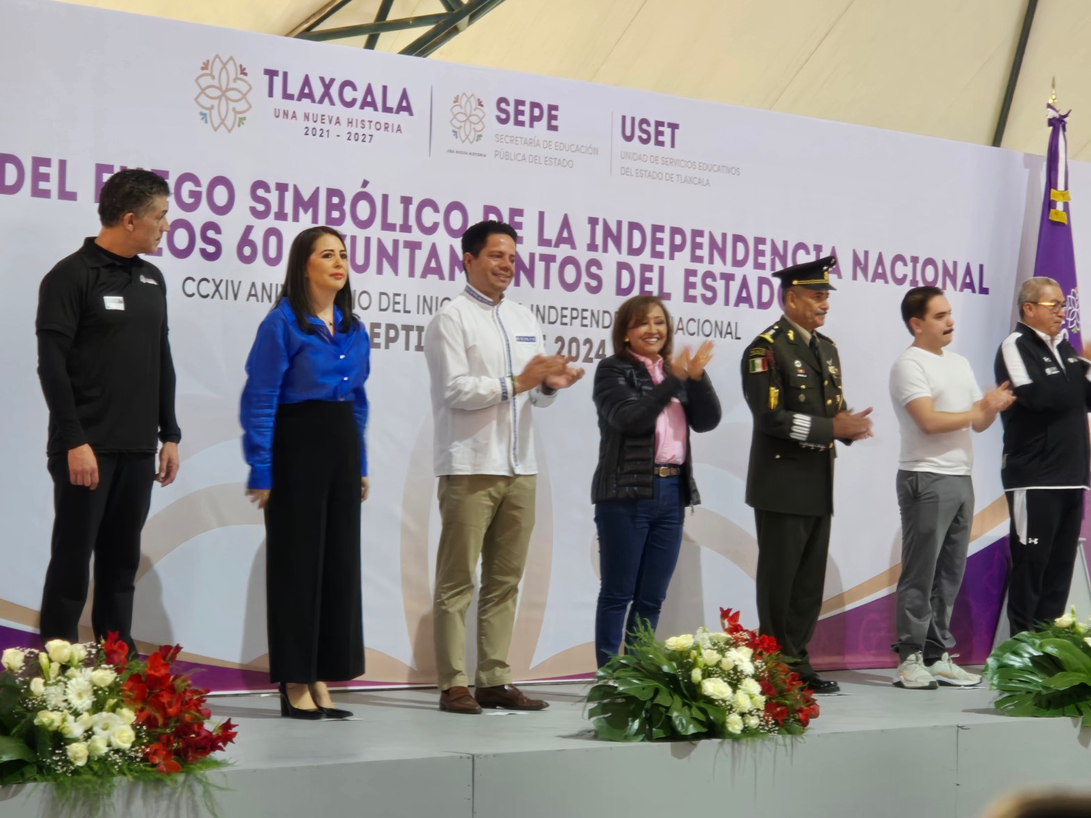 La ceremonia se realizó en el domo blanco del Centro Expositor Adolfo López Mateos en la capital tlaxcalteca, a donde también acudieron el secretario de Gobierno, Luis Antonio Ramírez Hernández; el comandante de la 23 Zona Militar, Martín Jaramillo Barrios; la presidenta del Tribunal Superior de Justicia del Estado (TSJE), Anel Bañuelos Meneses; el diputado local, Emilio de la Peña Aponte; el secretario de Educación Pública (SEPE), Homero Meneses Hernández, y el presidente municipal de Tlaxcala, Alfonso Sánchez García, así como integrantes del gabinete legal y ampliado.