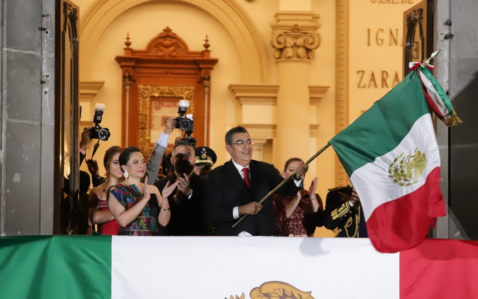 CIUDAD DE PUEBLA, Pue.- En un ambiente familiar, el gobernador Sergio Salomón presidió la ceremonia del 214 Aniversario del Grito de Independencia desde Palacio Municipal.