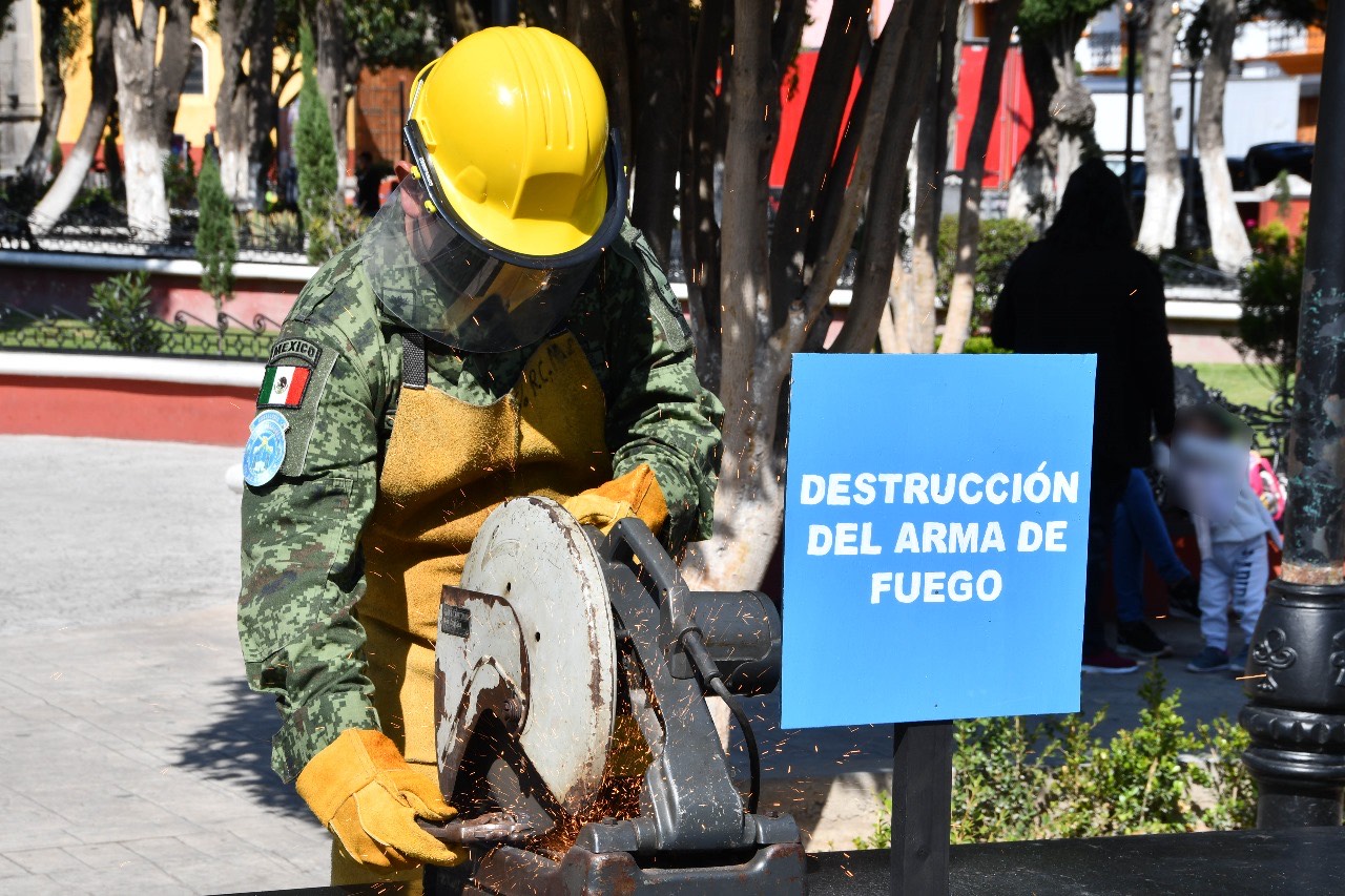 Autoridades estatales y municipales refirieron que esta campaña tiene el objetivo de fomentar la entrega voluntaria de armas de fuego, granadas y municiones a cambio de artículos de uso doméstico, como línea blanca y electrodomésticos.
