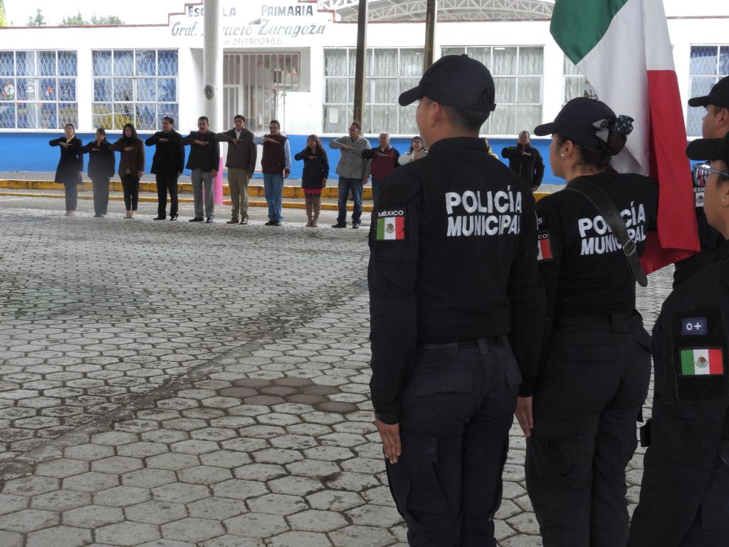 El acto contó con la presencia de personal administrativo de las diferentes áreas, elementos de la Dirección de Seguridad Pública y la escolta de la Escuela Telesecundaria Xicohténcatl Axayacatzin.