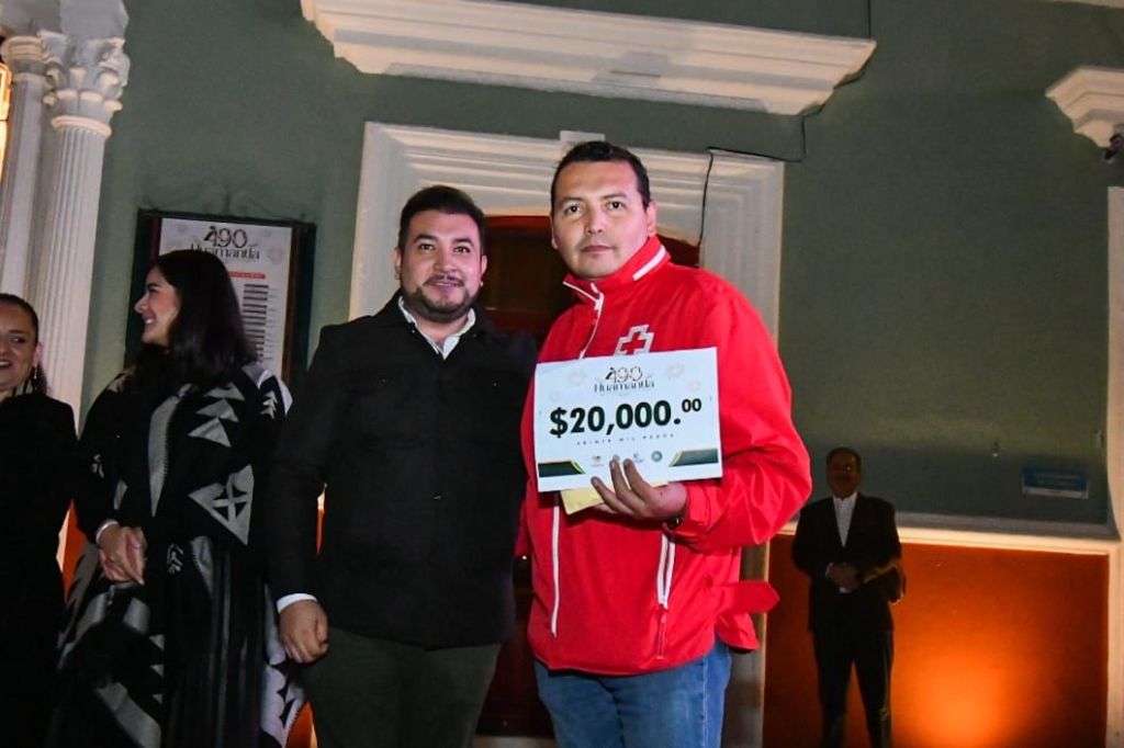 En el marco de este evento, el presidente municipal entregó apoyos económicos a la Cruz Roja Mexicana y reconocimientos a los organizadores y voluntarios de la 70 edición de la tradicional Huamantlada.
