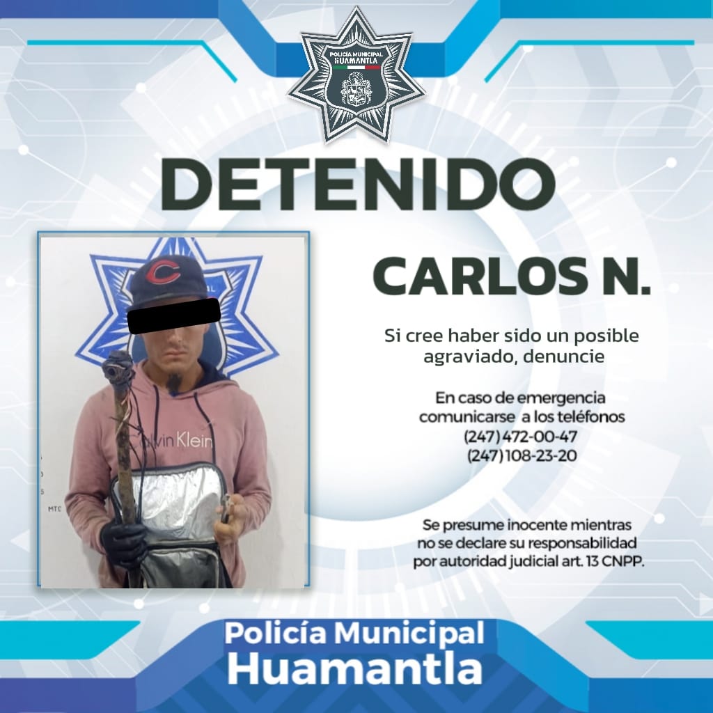 Gracias a las labores de vigilancia constante en las calles de Huamantla, la Policía Municipal detuvo a un hombre en flagrancia mientras intentaba presuntamente robar cableado perteneciente a la Comisión Federal de Electricidad (CFE).