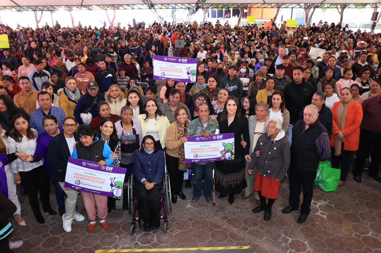 En el domo blanco del Recinto Ferial, la mandataria estatal comentó a las y los beneficiarios que estas acciones del DIF refuerzan el compromiso del gobierno del estado con la seguridad alimentaria de las familias más vulnerables; incluso, destacó que Tlaxcala tiene el segundo lugar a nivel nacional en disminuir la pobreza alimentaria, logrando que más hogares tengan comida en sus mesas todos los días.