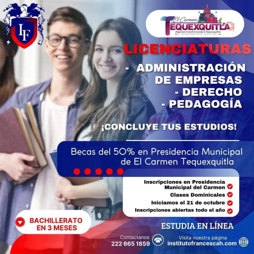 El Gobierno Municipal de El Carmen Tequexquitla te invita a para Inscribirte en las Licenciaturas con Becas del 50%.