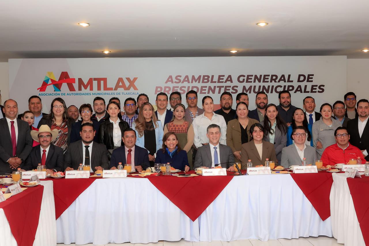 La gobernadora Lorena Cuéllar Cisneros tomó protesta a integrantes de la Asamblea General de la Asociación de Autoridades Municipales de Tlaxcala (Aamtlax), que preside el alcalde capitalino Alfonso Sánchez García, en su calidad de presidente de la Junta Directiva.