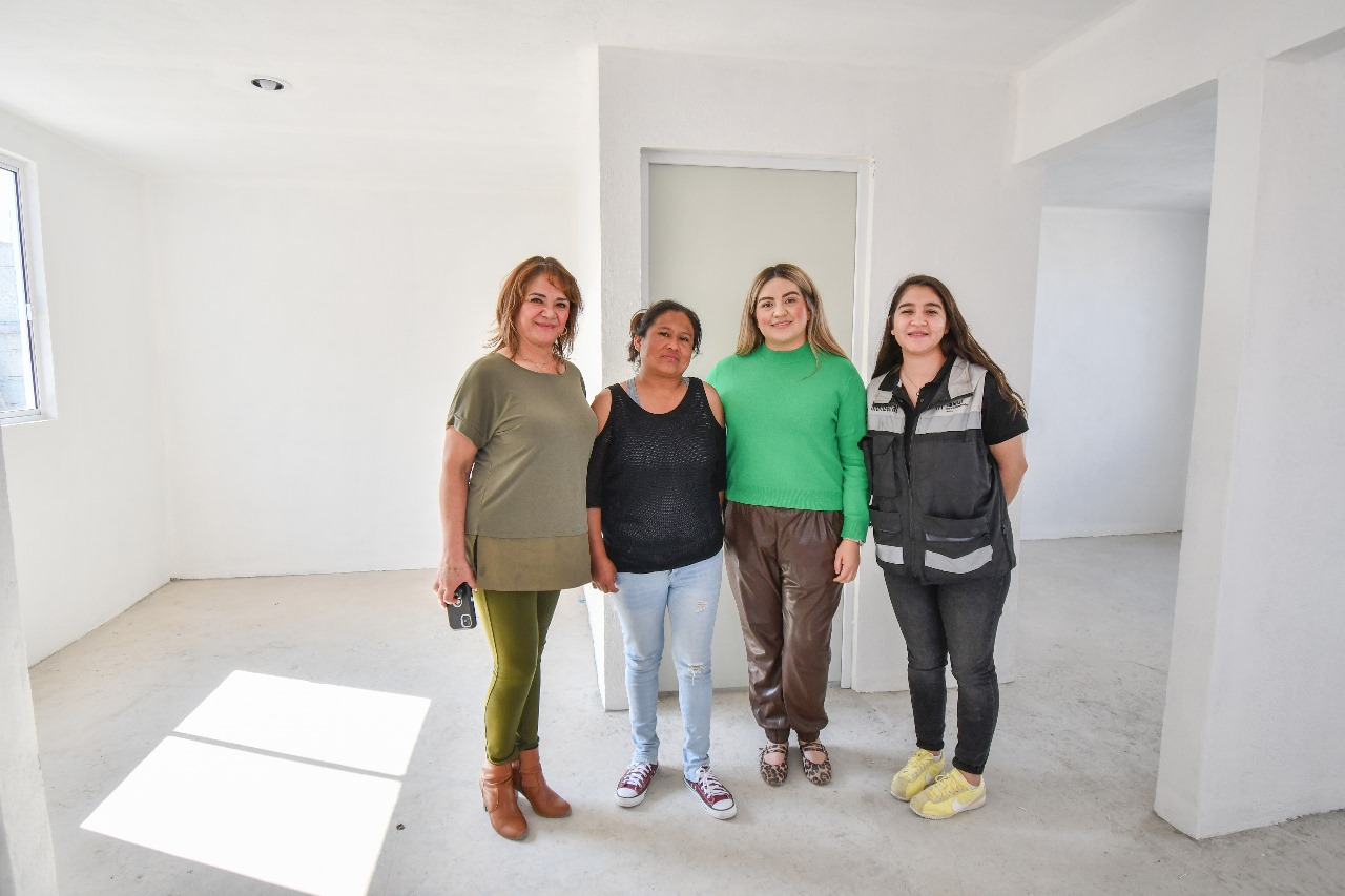 Tania Díaz Flores, directora de Obras de Huamantla, informó que la nueva vivienda cuenta con una superficie de 49 metros cuadrados, incluye iluminación, dos recámaras, un baño completo, estancia y cocina; además, ya fue impermeabilizada.