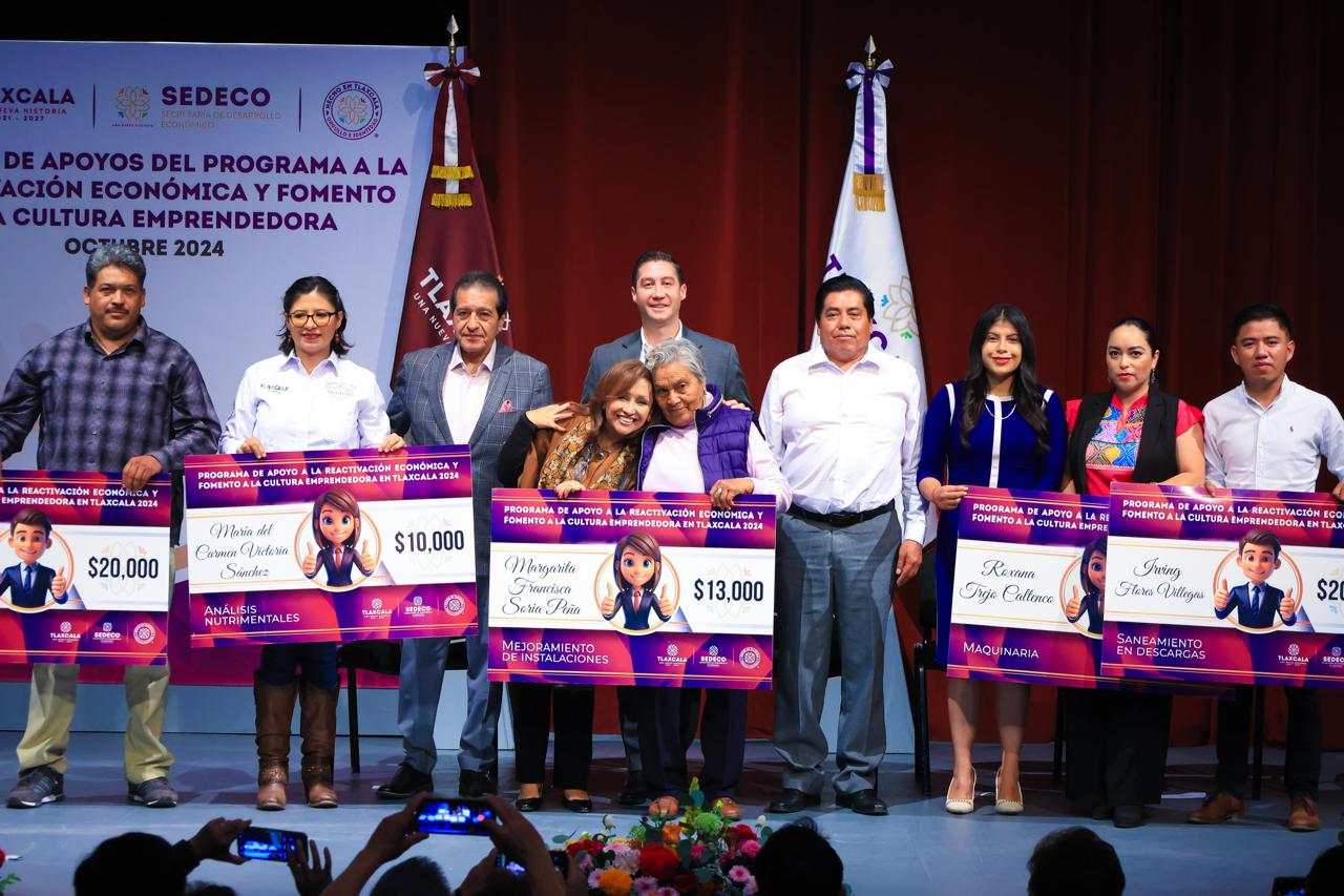 En el Teatro Xicohténcatl, la mandataria estatal comentó que en los últimos dos años, a través de este programa, su administración ha entregado cerca de 12 millones de pesos en apoyos para mujeres, hombres y jóvenes, con el objetivo de consolidar a las empresas tlaxcaltecas y evitar que sigan siendo parte de la informalidad, situación que genera una importante derrama económica y bienestar para las familias.