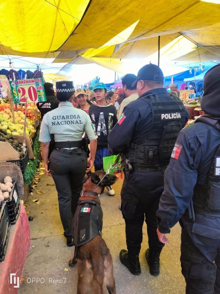 Con el objetivo de fortalecer la seguridad en espacios públicos y fomentar la confianza ciudadana, la Policía Municipal de Huamantla, en coordinación con la corporación estatal y la Guardia Nacional, llevó a cabo un operativo de proximidad social en el tradicional tianguis de los miércoles.