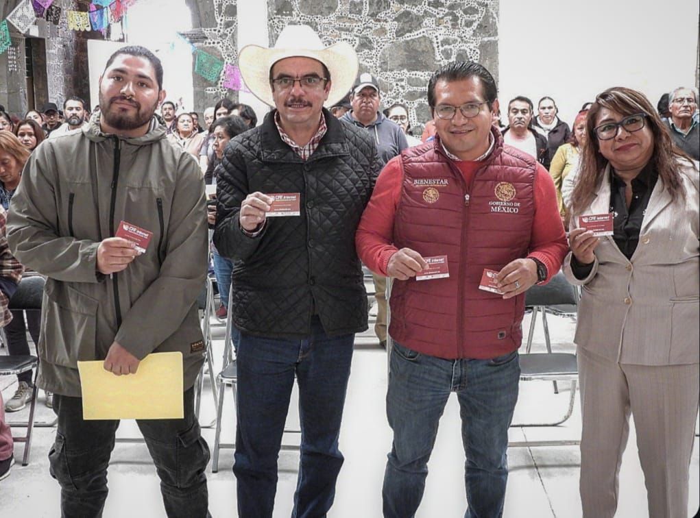 Durante el evento el Delegado del Bienestar en Tlaxcala Carlos Luna Vázquez y el Presidente Municipal David Vega Terrazas entregaron de manera simbólica SIM CFE a beneficiarios de la demarcación.