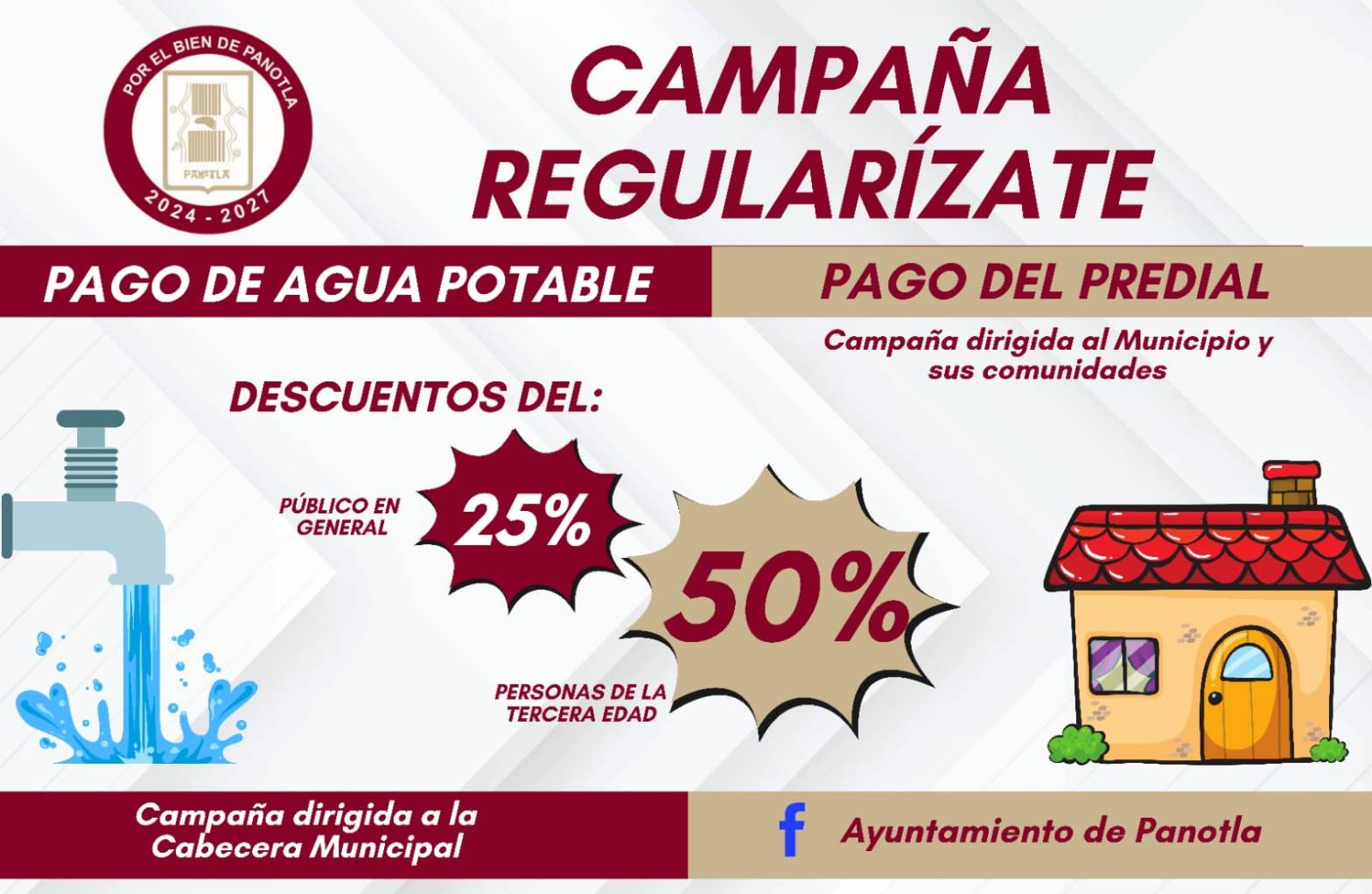 El Ayuntamiento de Panotla recuerda a las y los ciudadanos la «Campaña Regularízate» en el pago de agua potable y predial.
