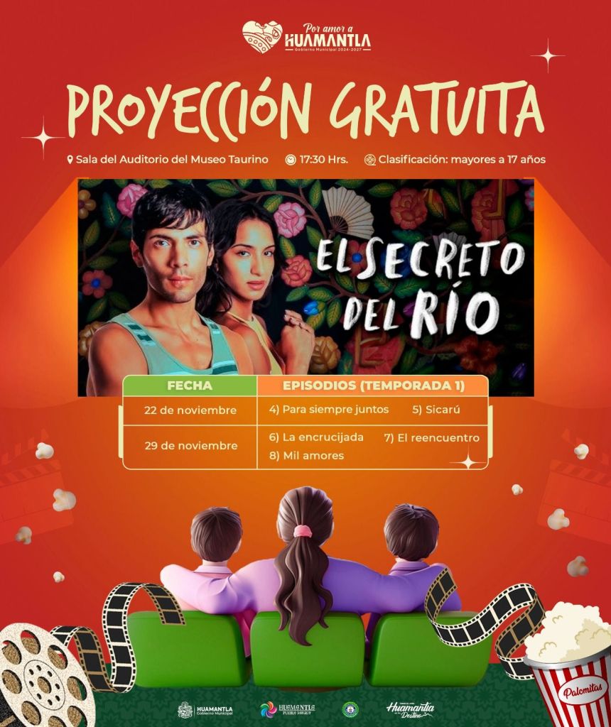 Para promover las actividades culturales y lúdicas entre las nuevas generaciones, el Gobierno Municipal de Huamantla invita a toda la población mayor de 17 años a la proyección gratuita de la serie “El secreto del río”, los próximos viernes 22 y 29 de noviembre, a las 17:30 horas, en la sala del auditorio del Museo Taurino.