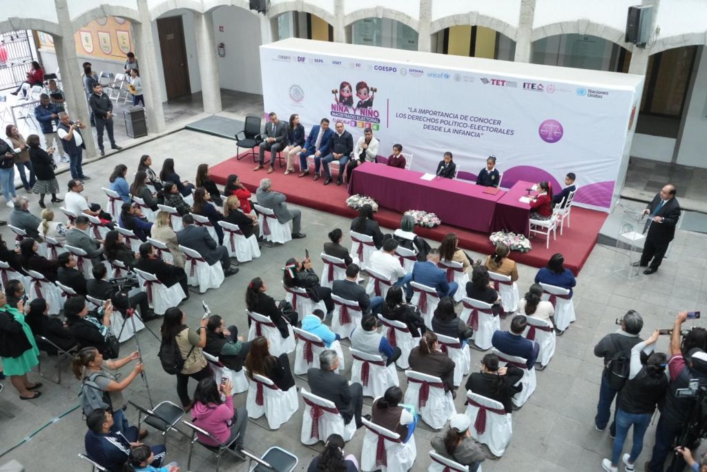 En el patio vitral del Congreso del Estado, se llevó a cabo el reconocimiento a las niñas y los niños ganadores del concurso de relato “Niña y Niño Magistrado Electoral”. Tras su victoria y nombramiento como Magistrados Electorales Infantiles, celebraron una Sesión Extraordinaria del Tribunal Electoral de Tlaxcala con el propósito de promover entre las infancias los derechos político-electorales de los que son titulares.