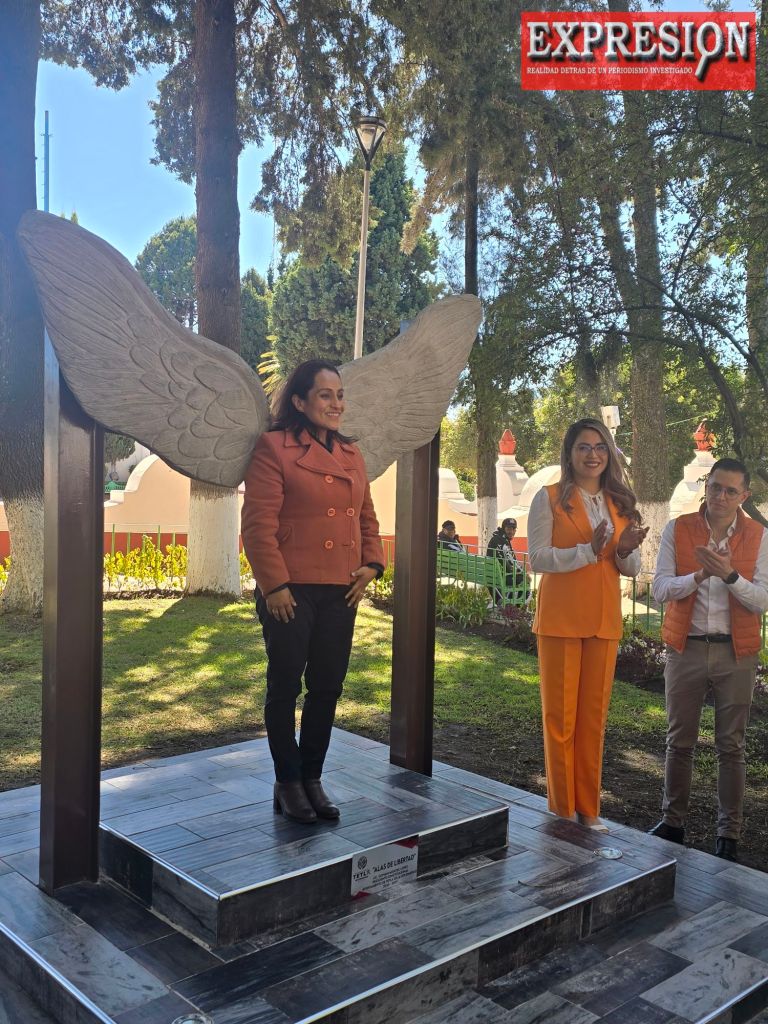 El dia de hoy la Presidenta del SMDIF de Tetla Gabriela Macias Barranco en conjunto con miembros del ayuntamiento develaron en la Plaza de las Americas el Monumento «Alas de Libertad», dentro del marco del Día Internacional de la Eliminación de la Violencia contra la Mujer.