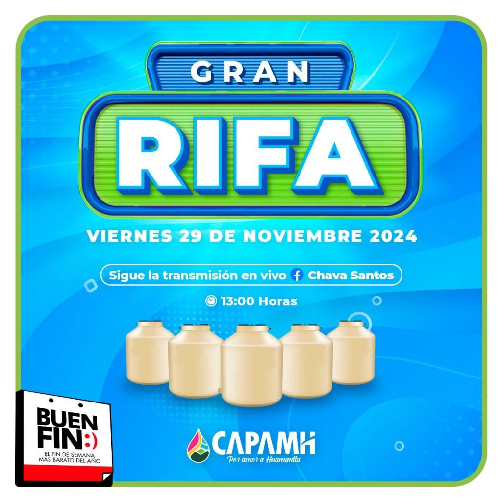 La Comisión de Agua Potable y Alcantarillado de Huamantla (Capamh) realizará la gran rifa de 200 tinacos con accesorios, como un reconocimiento a los usuarios que aprovecharon los beneficios de la promoción del Buen Fin 2024.