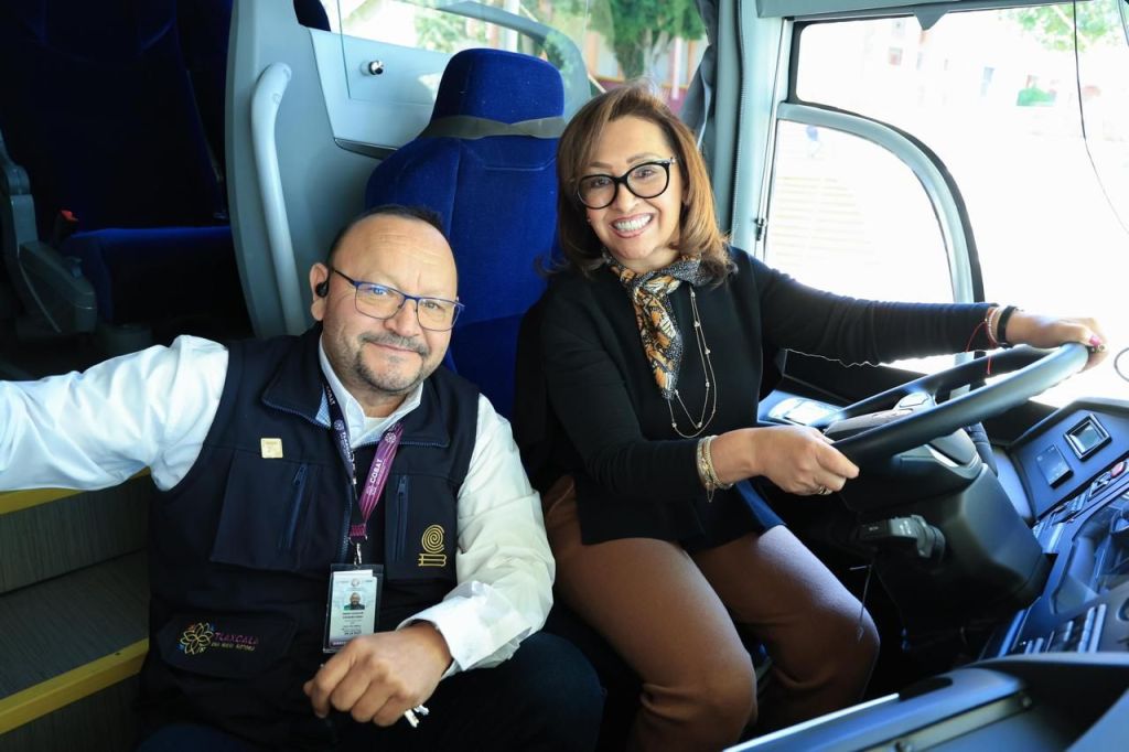 La gobernadora Lorena Cuéllar Cisneros entregó un autobús para garantizar el traslado seguro de los más de 17 mil estudiantes de los 29 planteles educativos del Colegio de Bachilleres de Tlaxcala (Cobat).