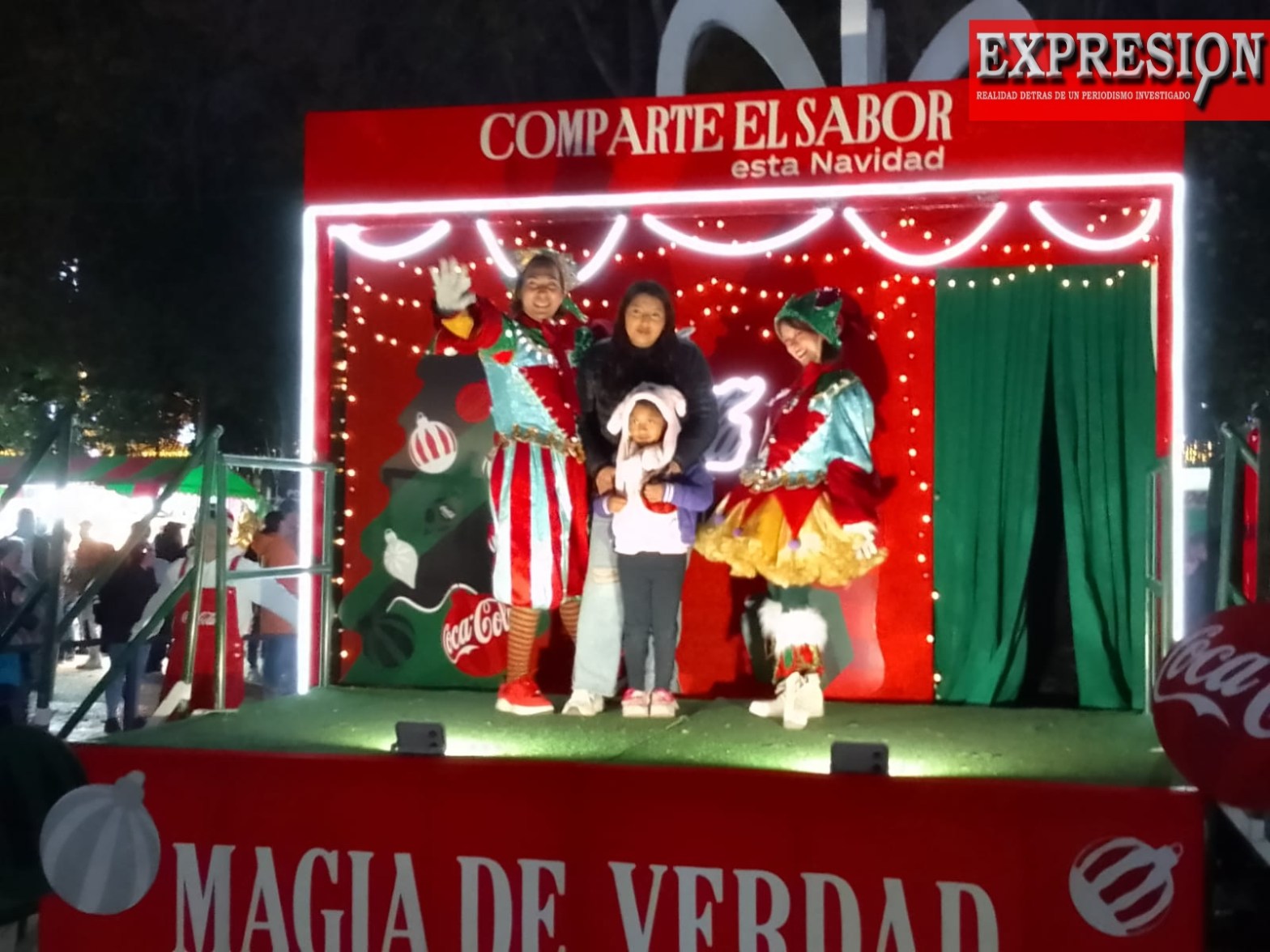 Este dia cientos de familias se dieron cita en el Parque Cuauhtémoc del municipio de Apizaco para disfrutar del espectáculo navideño de la empresa refresquera Coca Cola.
