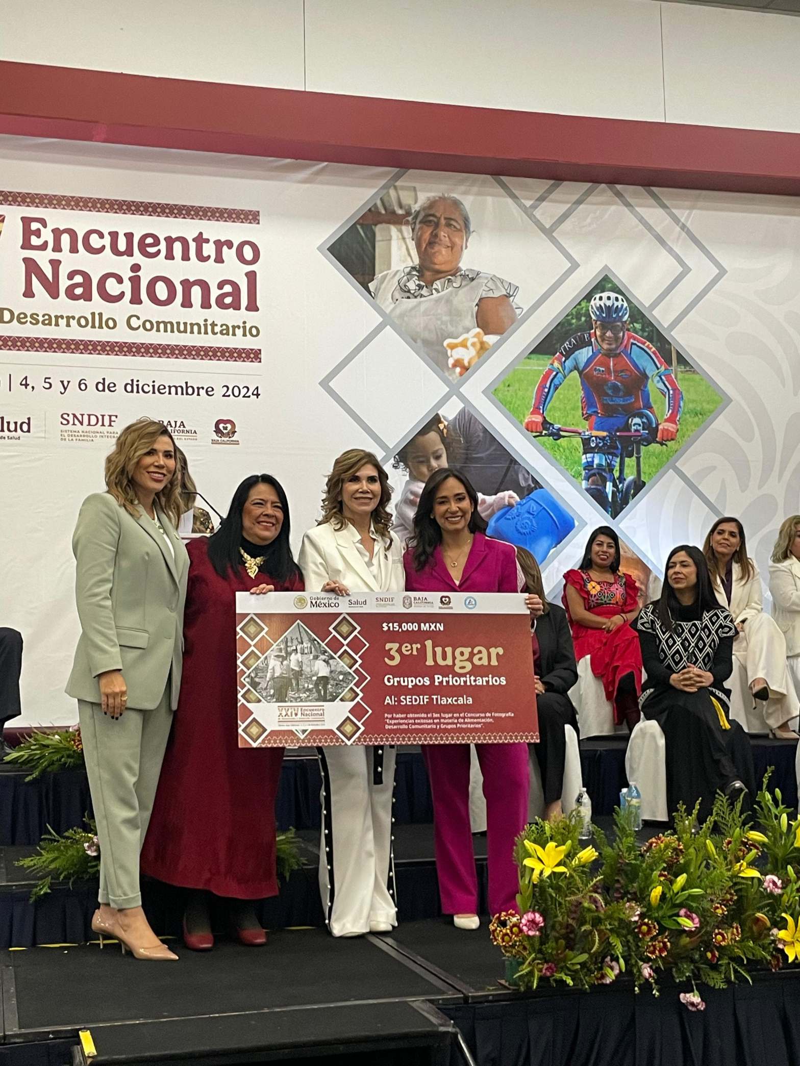 La presidenta honorífica del SEDIF Tlaxcala, Mariana Espinosa de los Monteros Cuéllar, recibió el reconocimiento por haber obtenido el tercer lugar en el concurso nacional de fotografía que organiza el SNDIF en el marco del XXIV Encuentro Nacional de Alimentación y Desarrollo Comunitario.