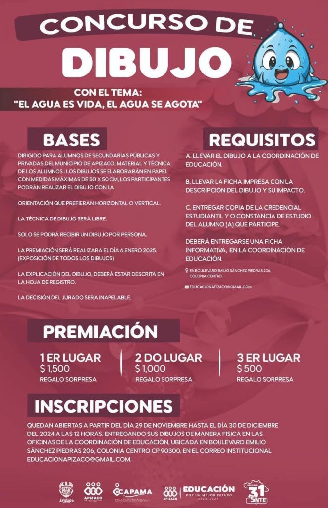 🖌️ Si te encanta dibujar, esta es tu oportunidad de brillar. Crea tu mejor dibujo a favor de la concientización del cuidado del agua 💦 y podrás ser el ganador 😉