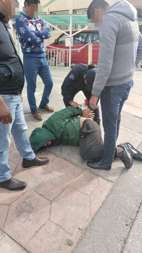 Al llegar al lugar de los hechos, los oficiales constataron que dos ciudadanos tenían sometido a un individuo que intentaba llevarse un vehículo Ford Fiesta, modelo 2006, color arena, por lo que de inmediato procedieron a asegurar al presunto responsable que respondió al nombre de Juan Jesus N., de 37 años de edad, originario del Estado de México.