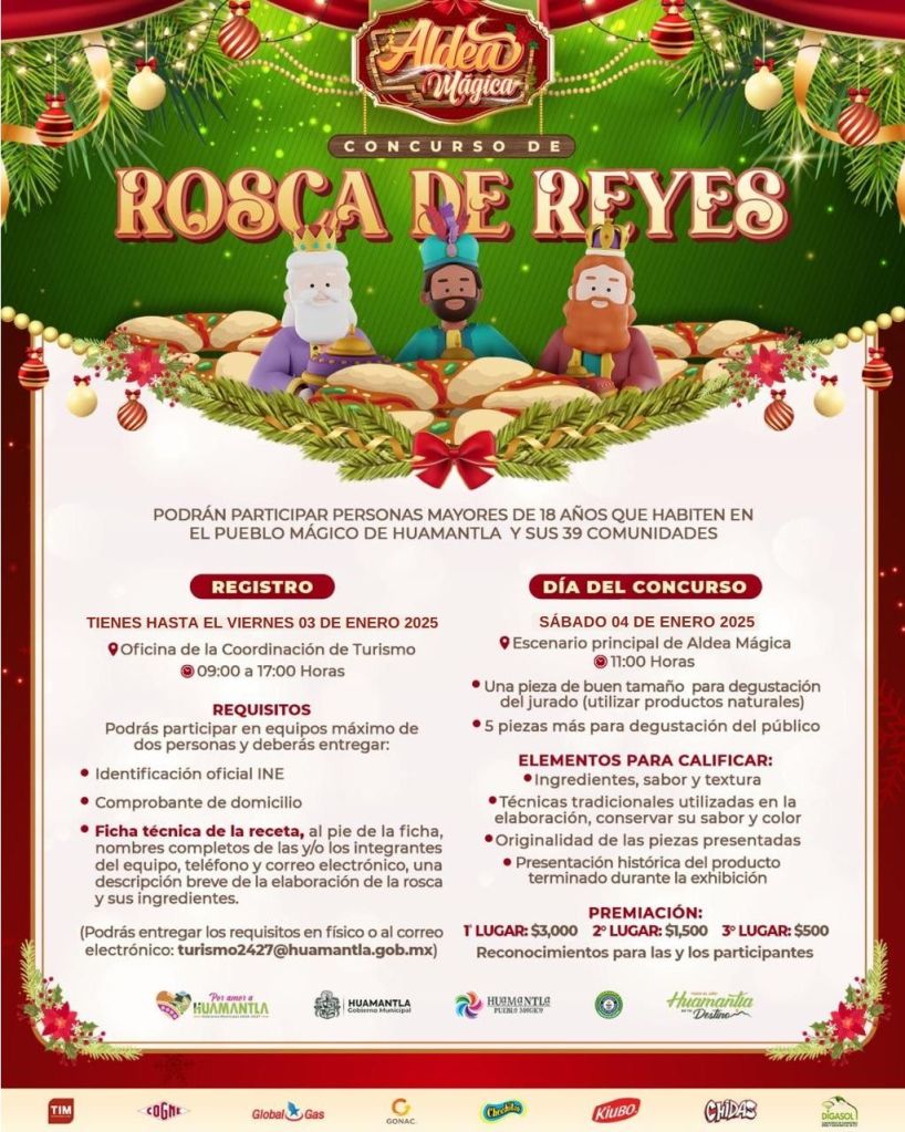 El concurso se llevará a cabo el próximo sábado 4 de enero, a las 11:00 horas, en el escenario principal de la Aldea Mágica y para la inscripción se requiere una ficha técnica con los datos completos de los integrantes, un teléfono, correo electrónico y una breve descripción del proceso de elaboración de la rosca y sus ingredientes.
