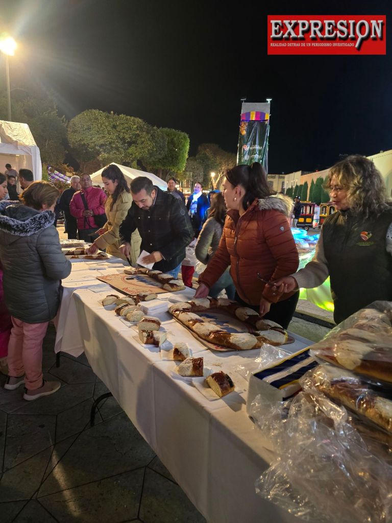 Acompañado por Melchor, Gaspar y Baltasar, el Presidente Municipal de Huamantla, Chava Santos, encabezó una noche mágica llena de alegría y tradición al compartir con niñas, niños y sus familias el corte de la tradicional Rosca de Reyes.