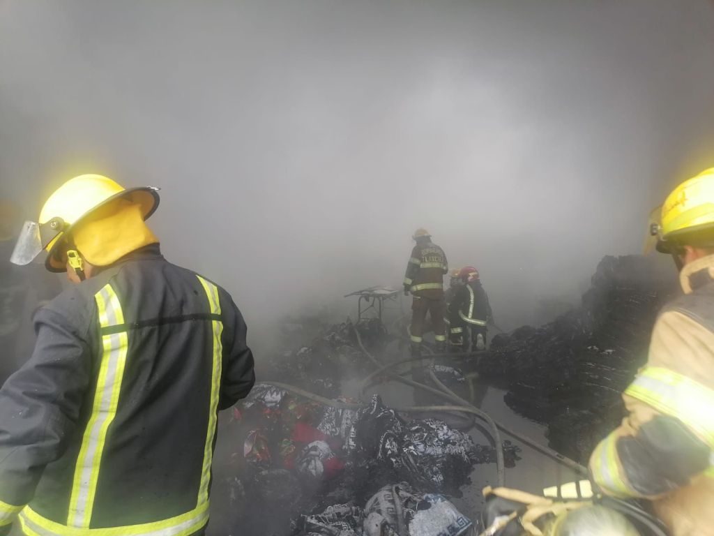 La Coordinación Estatal de Protección Civil (CEPC) atendió con puntualidad el reporte de incendio en una bodega con material textil en calle primavera, primera sección, perteneciente al municipio de Contla de Juan Cuamatzi.