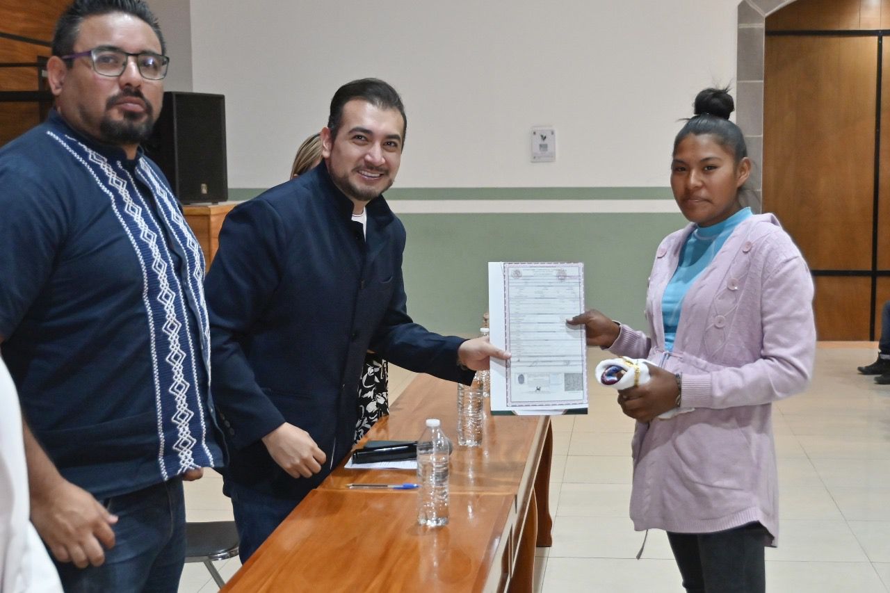 El Presidente Municipal de Huamantla, Salvador Santos Cedillo, y el Director de la Coordinación del Registro Civil del Estado, Víctor Hugo Mena Hernández, entregaron simbólicamente registros extemporáneos, que -en suma- beneficiarán a un total de 163 personas, con lo que se garantiza así su derecho a la identidad y el acceso a diversos servicios y trámites esenciales.