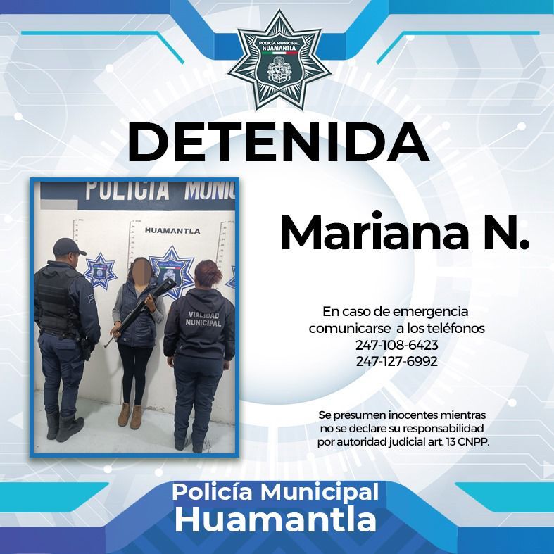 Derivado de un reporte a la comandancia municipal, elementos de la Policía de Huamantla acudieron a la zona habitacional San Carlos donde detuvieron a una mujer en posesión de un artefacto con características de un arma larga de fuego sin permiso de uso.