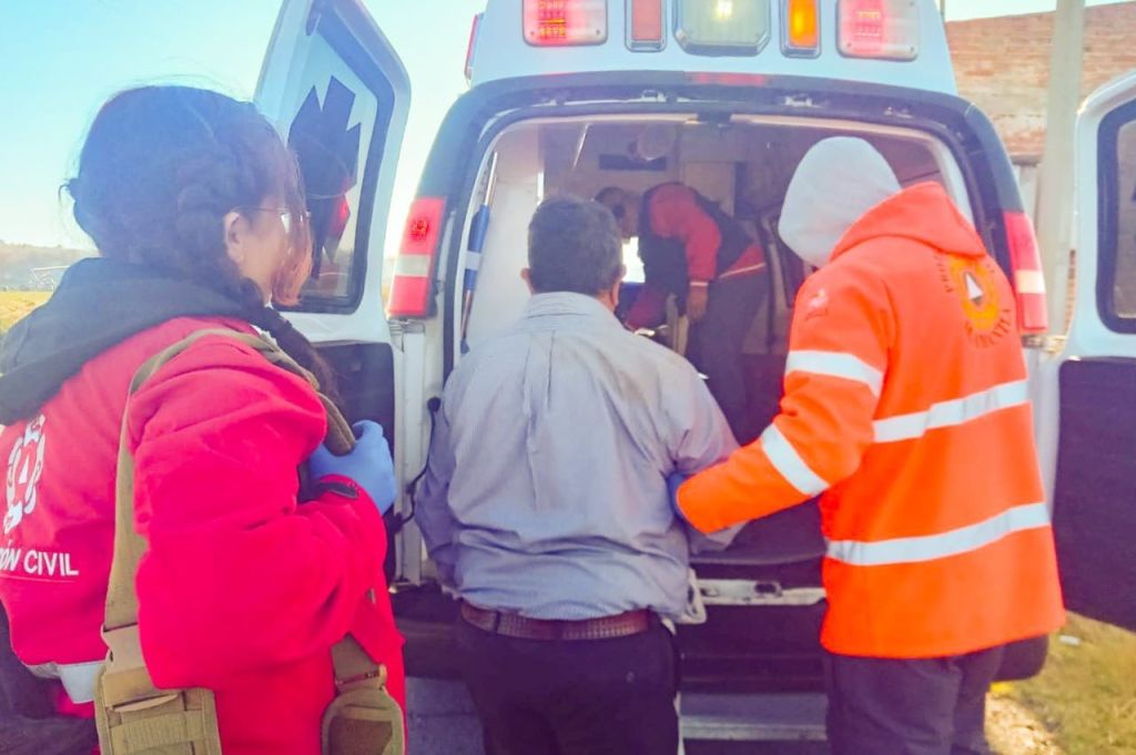 Ante esta situación, los paramédicos de Protección Civil valoraron las lesiones del taxista y posteriormente lo trasladaron a bordo de la unidad PC 03 a la Clínica del IMSS No. 2 por posible fractura en tórax.
