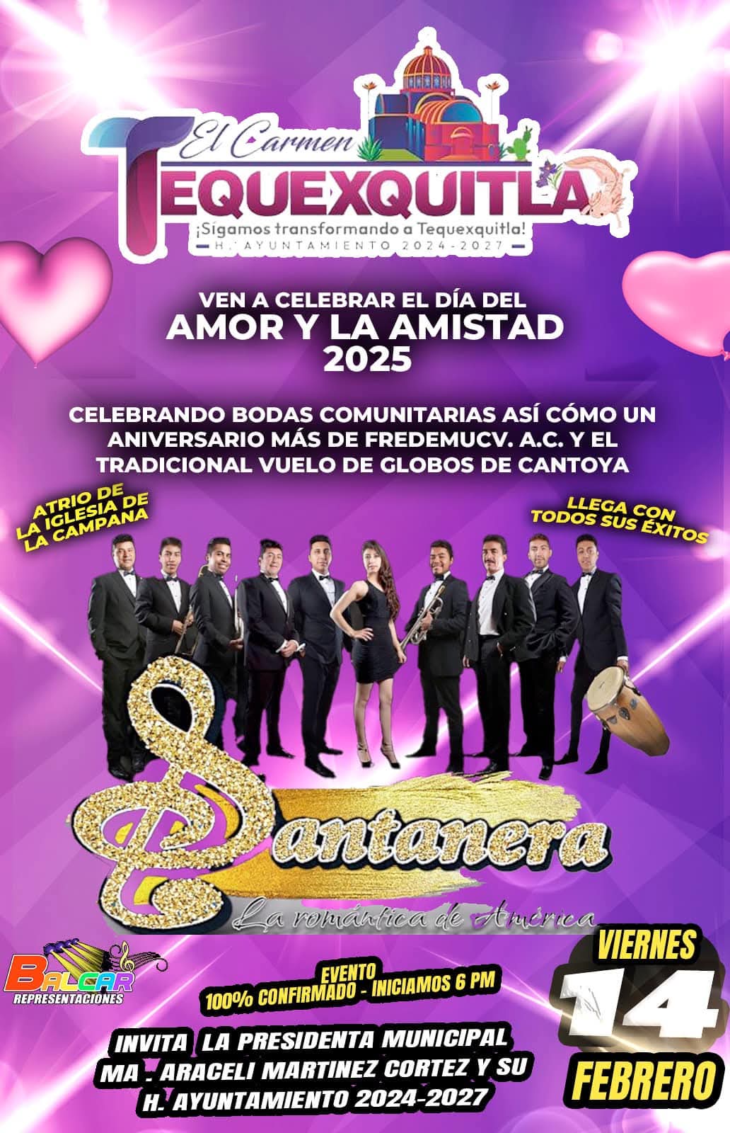 El Gobierno Municipal de El Carmen Tequexquitla, en conjunto con FREDEMUCV A.C., te invita a una celebración única e inolvidable 🎊. ¡Únete a nosotros para la celebración de bodas comunitarias, el aniversario de FREDEMUCV A.C. y el gran vuelo de globos de cantoya! 🎈